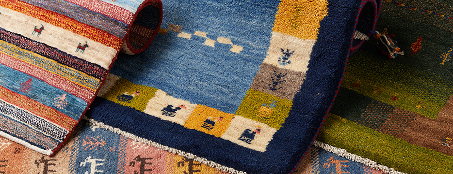 「ギャッベ(ギャベ、ガッベ)」と呼ばれる絨毯は、イラン南西部の遊牧民族カシュカイ族、ルリ族が作ってきた絨毯のタイプ。寝床にも使えるよう毛足が長く、直線的で単純な図柄が特徴とされています。