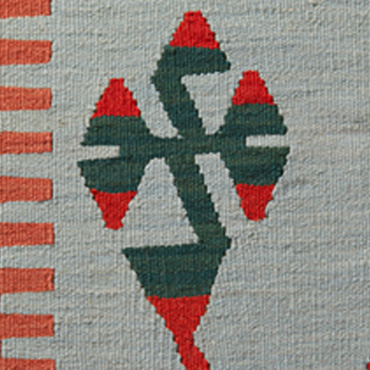 一般的な布と同様の平織り、綾織りの方法で織られたものはキリムと呼ばれています。