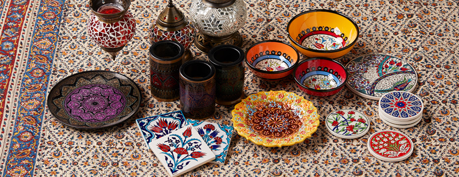 中東は絨毯の産地というだけではありません。その装飾性を活かしたタイルやカップ、ガラス細工なども有名です。アミールでは質のよい小物雑貨を選んでいます。